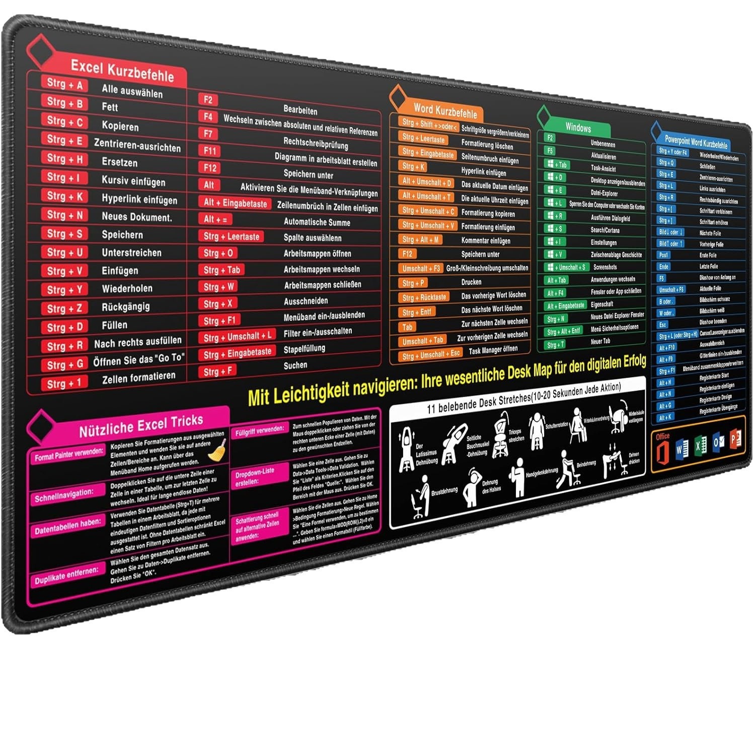 Podloga za miško z angleškimi bližnjicami: protizdrsna, trpežna in udobna M