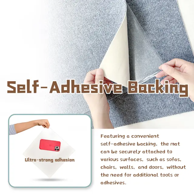 Samolepilna površina: Zahvaljujoč samolepilni spodnji strani lahko predpražnik varno in enostavno pritrdite na različne površine, kot so sedežne garniture, stoli, stene in vrata. Dodatno orodje ali lepilo ni potrebno.