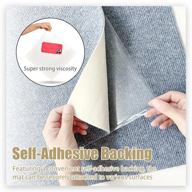 Samolepilna površina: Zahvaljujoč samolepilni spodnji strani lahko predpražnik varno in enostavno pritrdite na različne površine, kot so sedežne garniture, stoli, stene in vrata. Dodatno orodje ali lepilo ni potrebno.