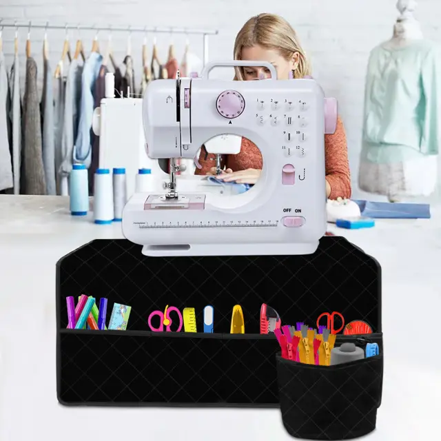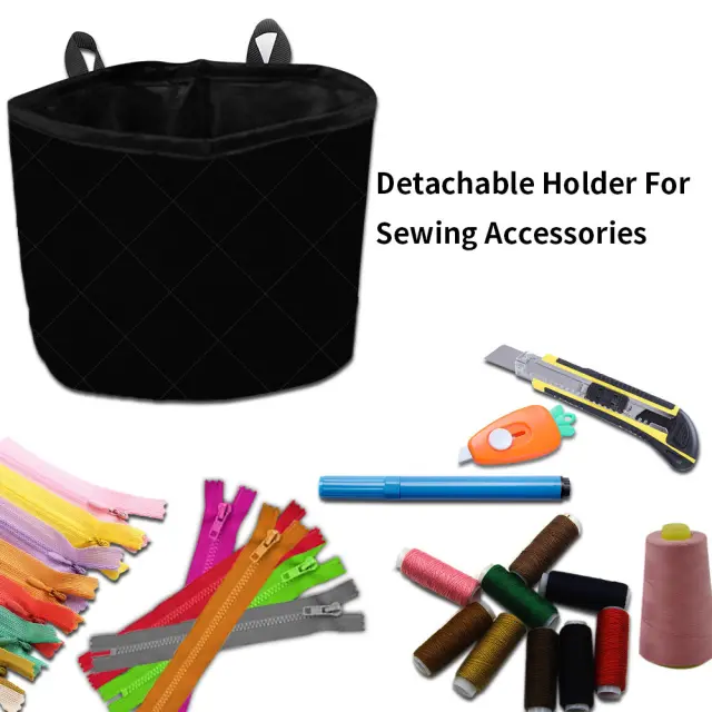 Izdelan iz vodoodbojnega materiala za dodatno zaščito. Ta organizatorska torba, opremljena s strateško nameščenimi žepi, zagotavlja določeno mesto za vsak šivalni pribor, vključno z iglami, nitmi, merilnim trakom in drugim.