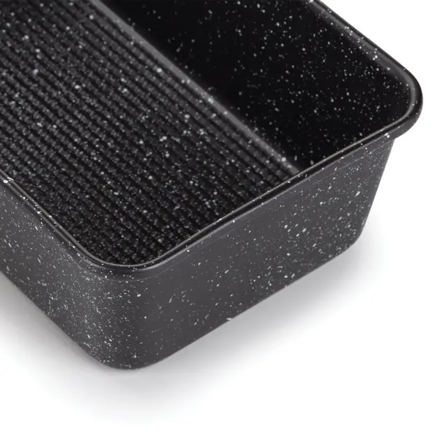 Podolgovati pekač Rosmarino BakerPRO je vse, kar potrebuješ za popolno peko pečenke, mesne štruce, kruha, narastka ali drugega peciva. Pekač v izgledu marmorja ima neoprijemljiv premaz ILAG švicarske kakovosti, ki poskrbi za enakomerno razporeditev toplote in peko z minimalno maščobe, saj se hrana ne oprijema pekača. Zaradi sestave iz karbonskega jekla je pekač odporen tudi na visoke temperature, do 230 °C, primeren za hrambo v hladilniku in zamrzovalniku. Trpežna in zanesljiva zasnova za profesionalne pekovske rezultate.