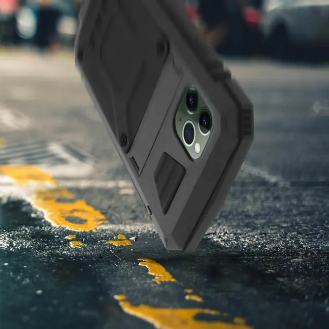 Integrirana in izjemno robustna zaščita iz serije Tank za vaš Apple iPhone 11 Pro. Vaš telefon je z vseh strani zaščiten pred praskami, udarci, padci, vodo in prahom. Zaslon je zaščiten z dvignjenim aluminijastim obrisom, ki ga dopolnjuje zaščita sprednjega zaslona iz kaljenega stekla. Certifikat IP54: odporen na prah in brizganje / zasnovan je tako, da prenese vse vrste podnebnih razmer (sneg, pesek, dež ...).