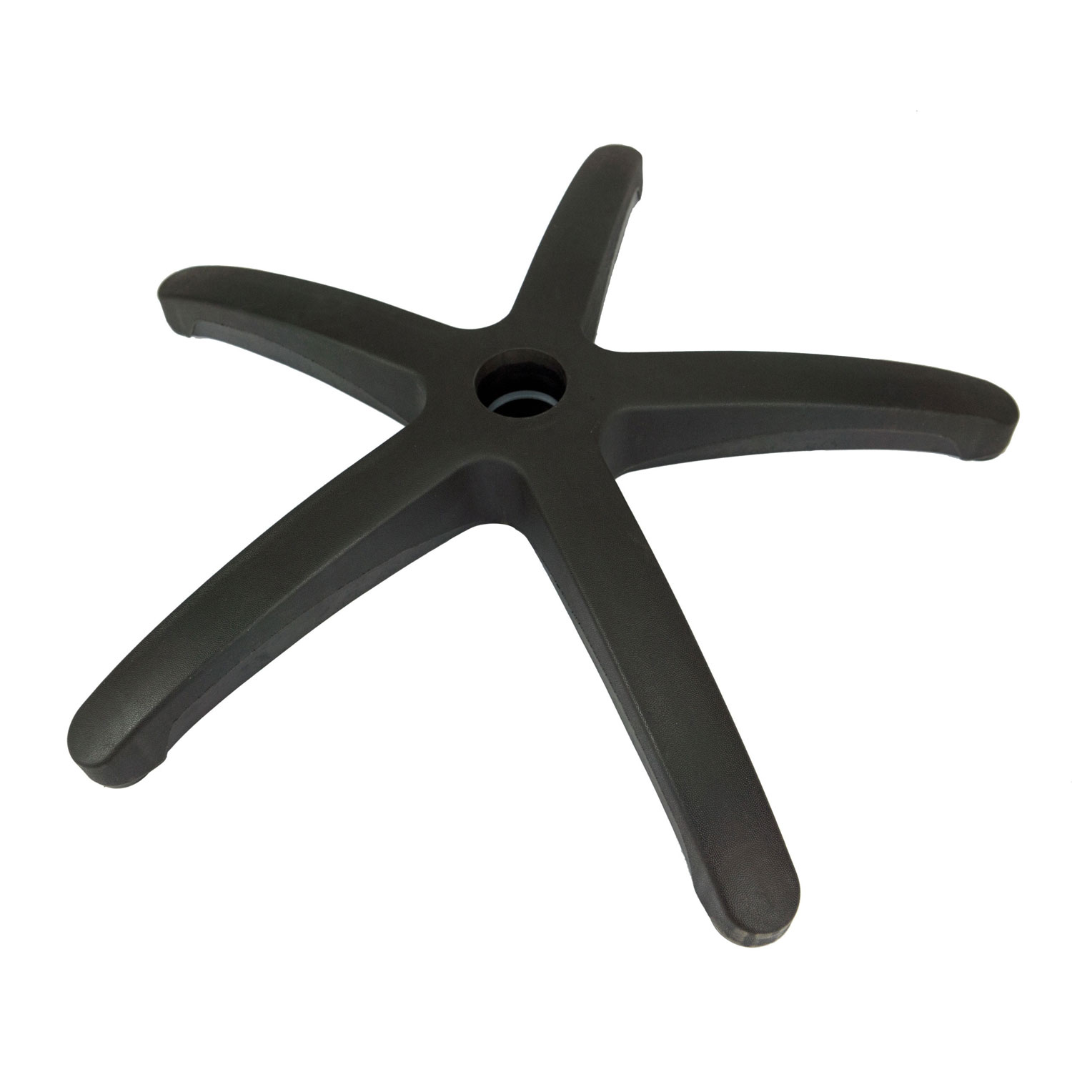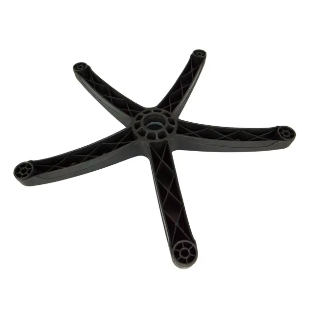 Najlonsko podnožje - standardno podnožje za fotelje in pisarniške stole v univerzalni črni barvi. Podnožje s premerom luknje 50 mm za plinski stolpec in velikost kolesnega vretena 11 mm zagotavlja stabilen sedež. Dolžina kraka je 32 cm, premer celotnega podstavka pa 64 cm.