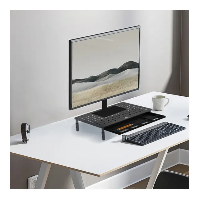 Macleanovo praktično stojalo s predalom MC-946 za prenosni računalnik ali monitor je primerno za pisarniško in domačo uporabo. Združljivo je z monitorji od 13 do 32 palcev in nosilnosti do 20 kg.
