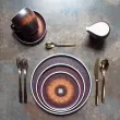 Podstavek oz. krožniček za skodelico za čaj (240ml) iz linije Estia Rust, blagovne znamke Le Coq Porcelaine, ima premer 15,5 cm in je izdelan kakovostnega porcelana. Linijo navdihujejo simboli boginje Hestije (ognjišče in živi plamen), ki se odražajo predvsem v oblikah in toplih odtenkih te kolekcije porcelana. Oranžno-rjasta dekoracija naredi vsak predmet v zbirki edinstven in neponovljiv. Linija velja za najvrednejši porcelanasti izdelek, ki ga odlikujejo odpornost, trdota in prosojnost. Porcelan gre skozi dve različni stopnji žganja, v drugi temperatura preseže 1300 °C. Krožniček je primeren za uporabo v mikrovalovni pečici in pomivanje v pomivalnem stroju. Idealen je za profesionalno pa tudi domačo uporabo. Skodelica NI priložena. Kombinirajte ga še z ostalimi izdelki iz linije Estia Rust.