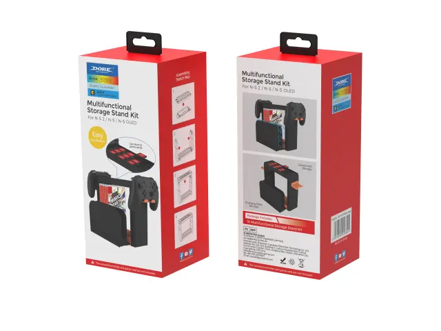 Shramba za priklopno postajo: Zasnovana za namestitev originalne video pretvorbene postaje, ki omogoča nemotene prehode v TV način. Ta funkcija omogoča igralcem, da brez težav preklapljajo med ročnim in TV načinom za bolj poglobljeno igralno izkušnjo. Z integracijo postaje v stojalo ohranja vaše igralno območje urejeno in preprečuje nered kablov. Uživajte v prilagodljivosti igranja na poti ali na velikem zaslonu brez težav z odklapljanjem in ponovnim priklapljanjem kablov.