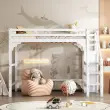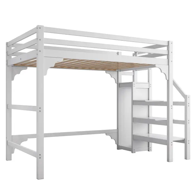 Podstrešna postelja 140x200 cm z letvenim dnom, stopnicami, omaro in prostorom za shranjevanje, bela