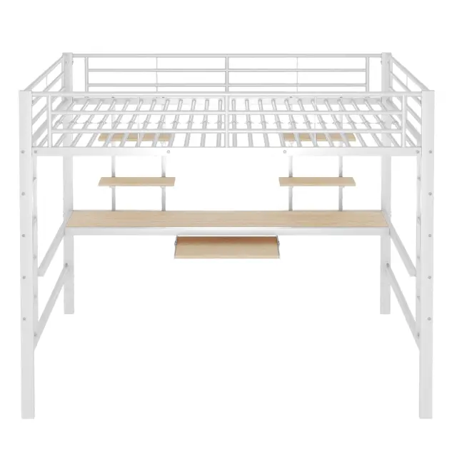 Podstrešna postelja 140x200 cm z mizo in policami, bela