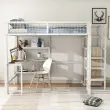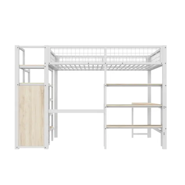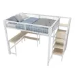 Podstrešna postelja 140x200 cm, železna, z lestvijo, policami, omaro in pisalno mizo, bela