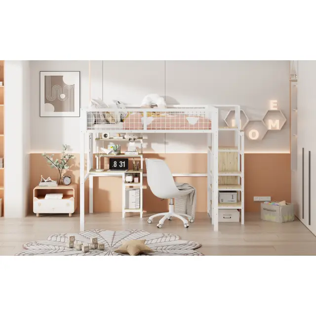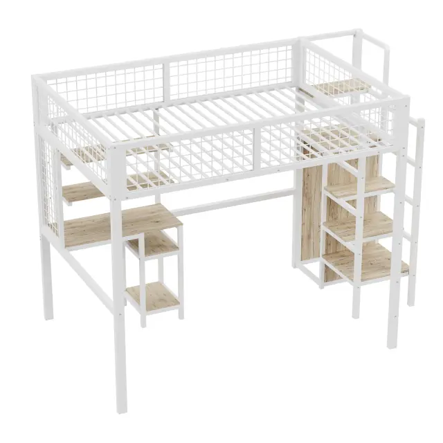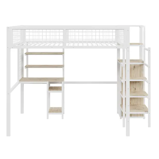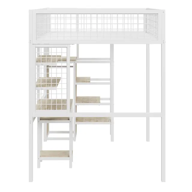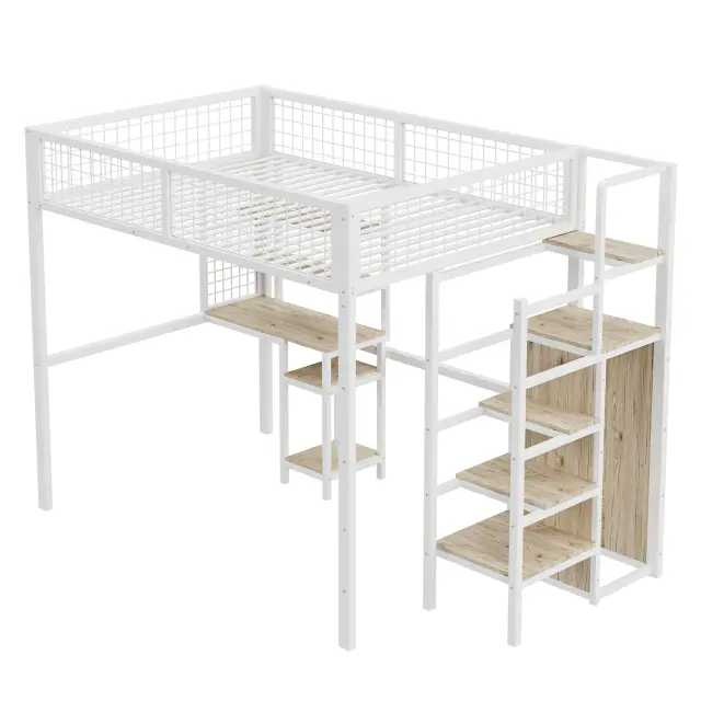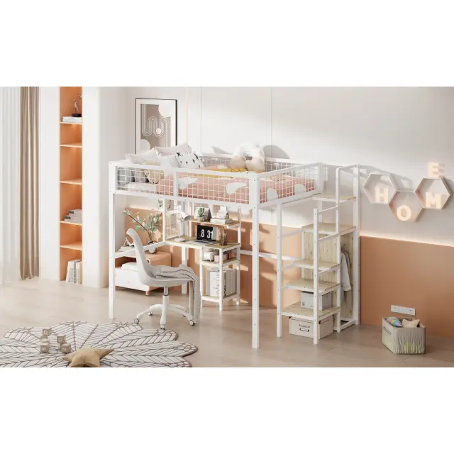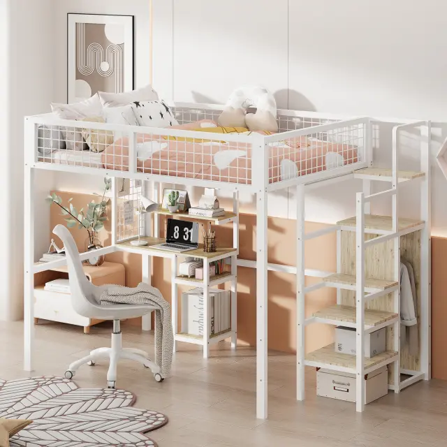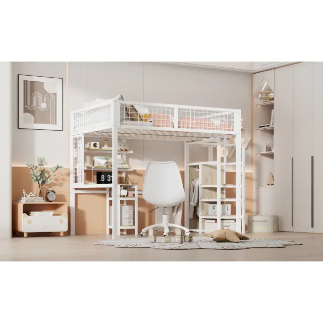 Podstrešna postelja 140x200 z lestvijo, omaro in mizo, bela