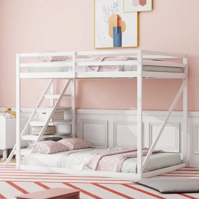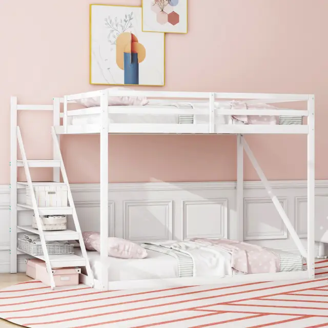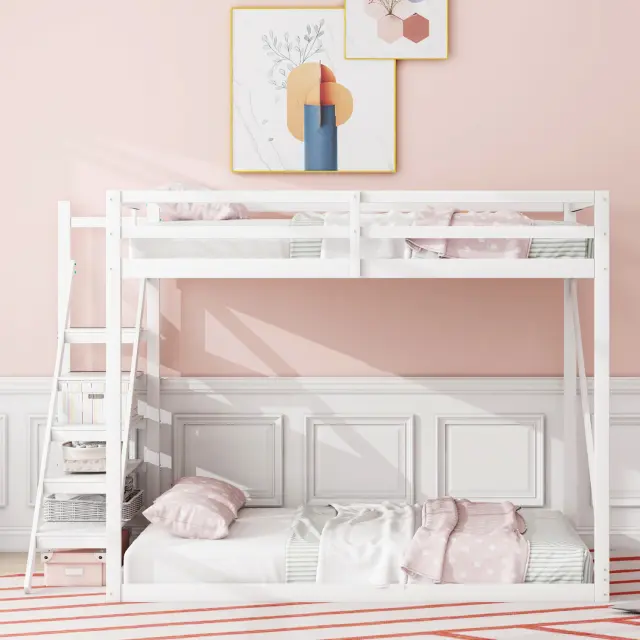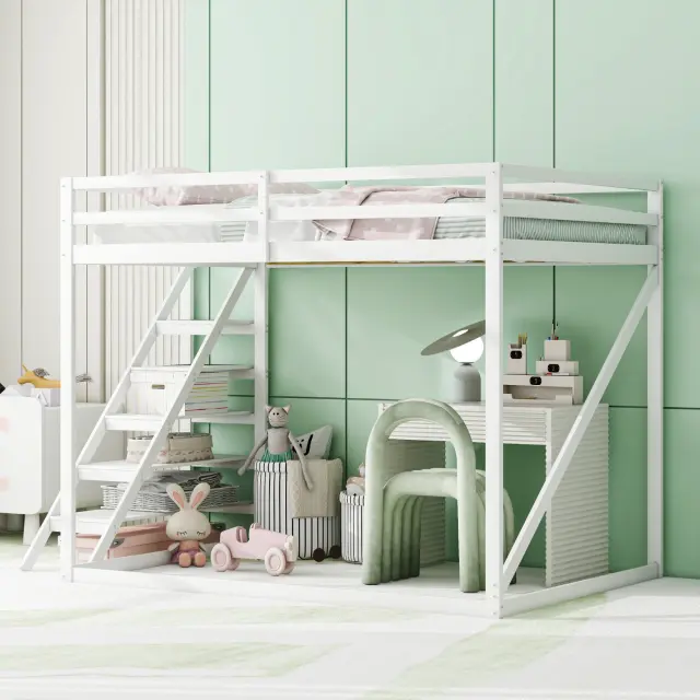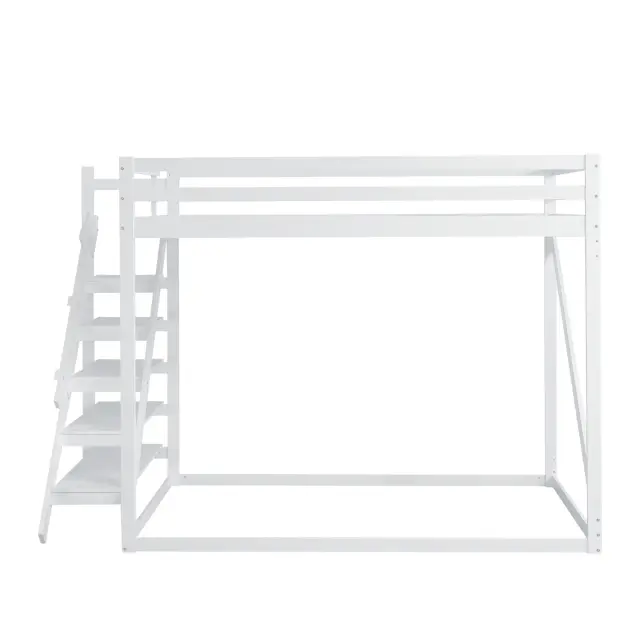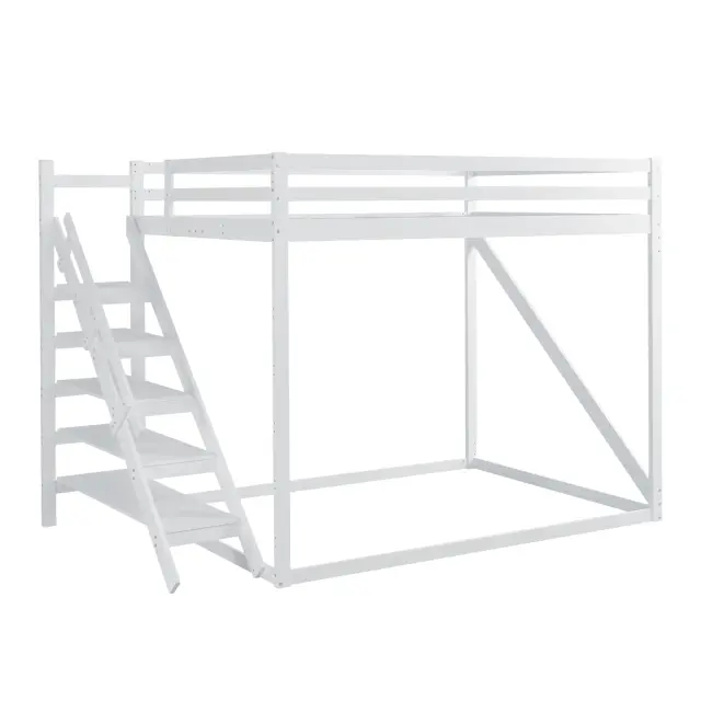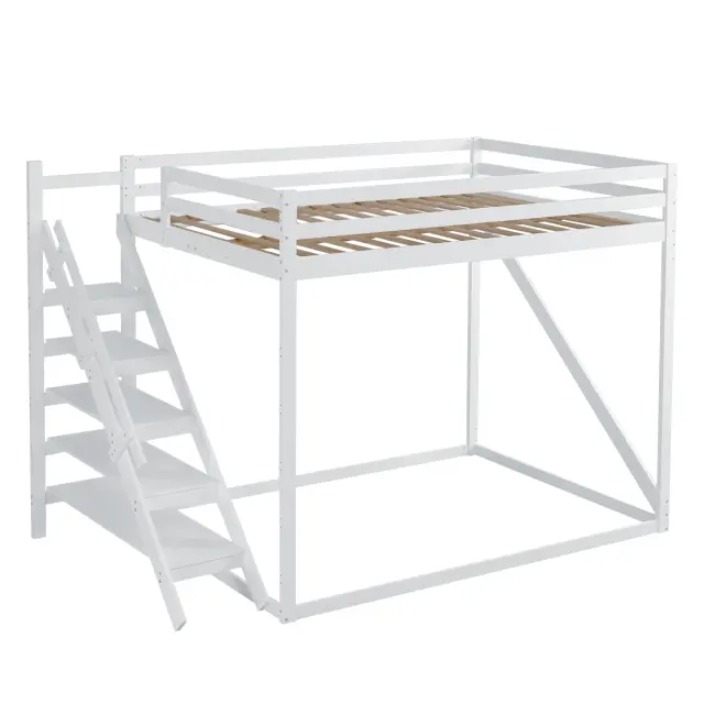 Podstrešna postelja 140x200 z varnostno lestvijo, pograd iz masivnega lesa z letvenim dnom - bela