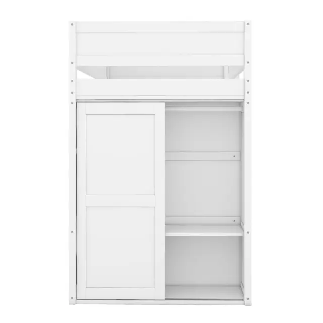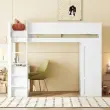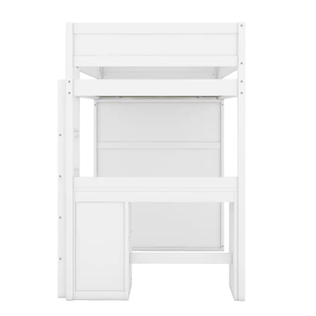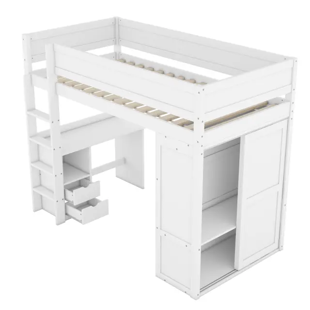 Podstrešna postelja 90x200 cm z omaro, pisalno mizo in predali, bela