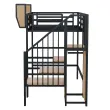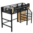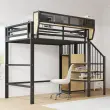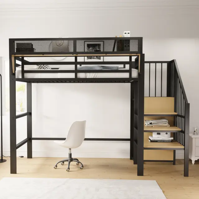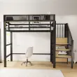 Podstrešna postelja 90x200 z varnostno lestvijo in prilagodljivim predalom za shranjevanje, kovinska postelja črne barve