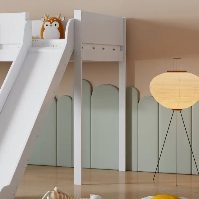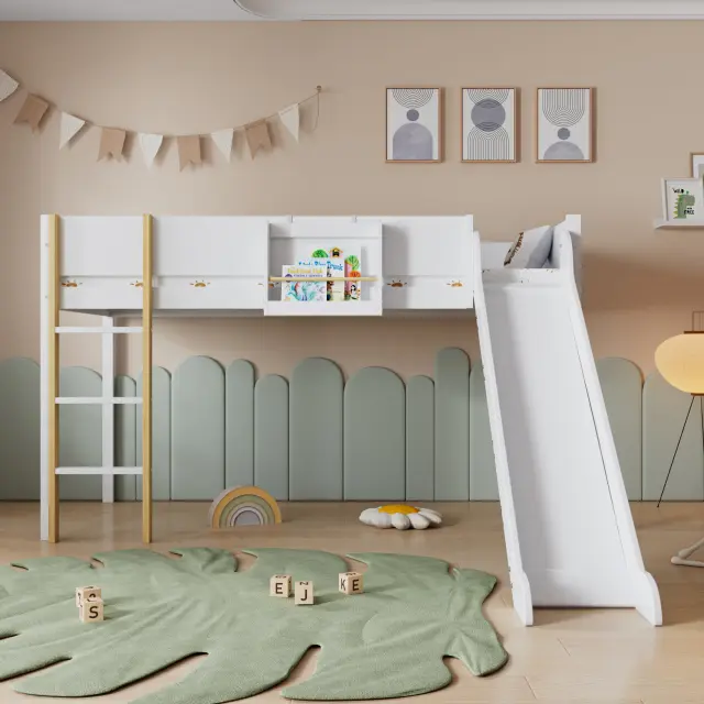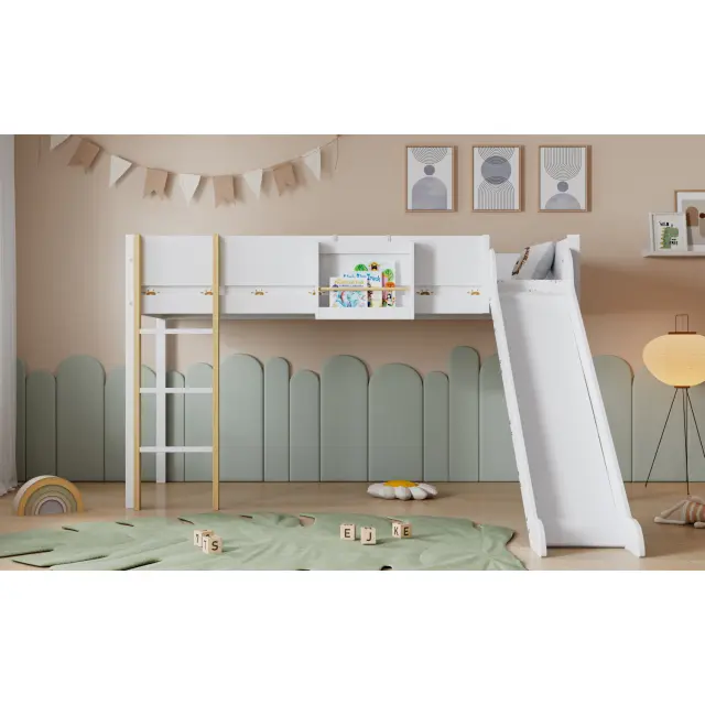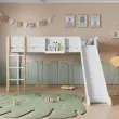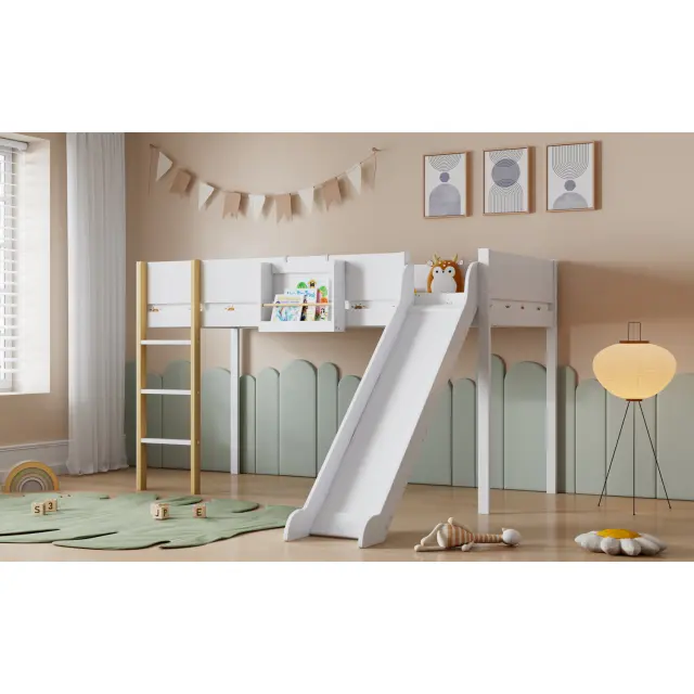 Podstrešna postelja z drsnim dnom, snemljiva polica, bor/MDF, bela/naravna, 90x200 cm