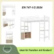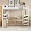 Podstrešna postelja z mizo, vtičnico, USB priključkom in policami, bela, 90x200 cm