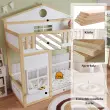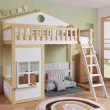 Ta pogradna postelja, izdelana iz belega in naravnega lesa, ima igrivo streho in okno, varno zgornjo posteljo z ograjo in praktično stopnišče. Prostor pod njo se lahko uporablja za shranjevanje ali igro.