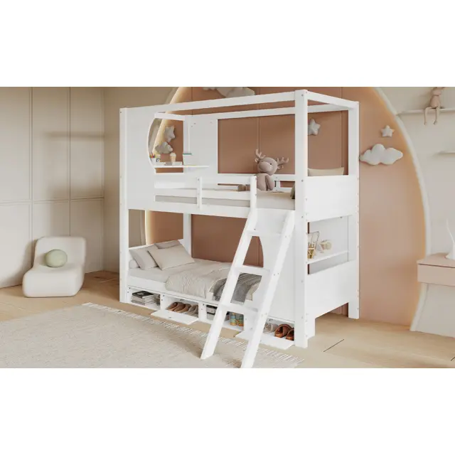Pograd z mizico, omarico za čevlje, veliko prostora za shranjevanje, bor, bela, 90x200 cm