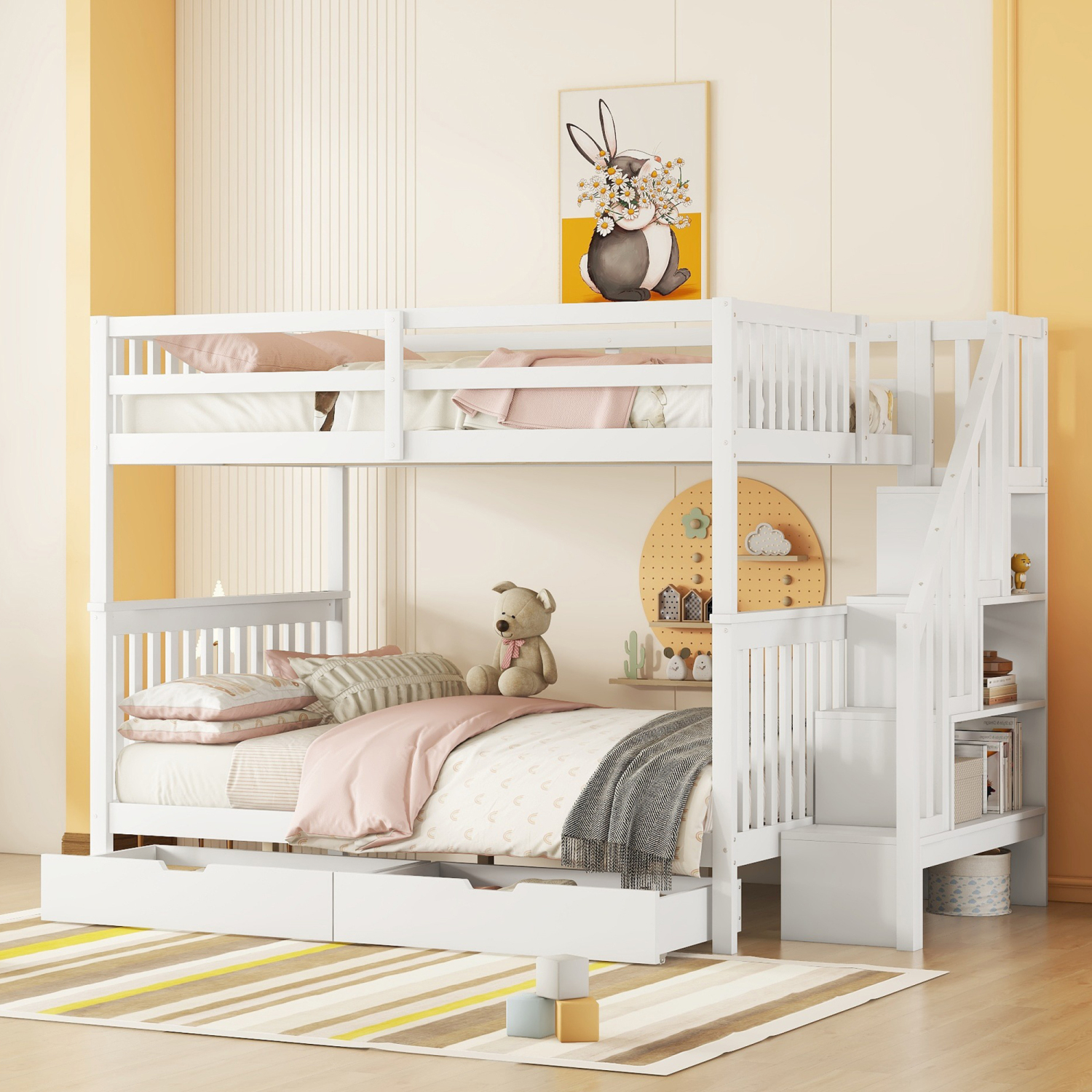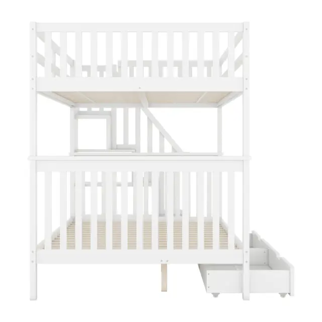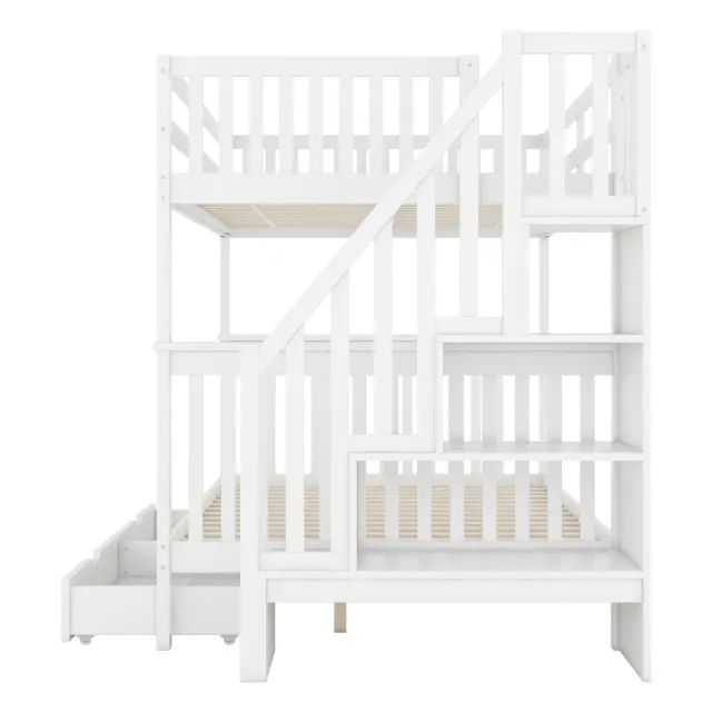 Pogradna postelja 140x200 cm s polico na stopnicah, 2 predala, visoka ograja, certificirana po EN747-1, bela