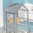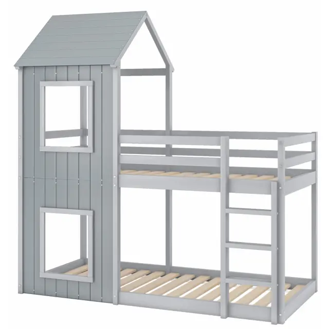 Pogradna postelja 90x200 cm, hišna postelja za deklice in dečke, z lestvijo in baldahinom, siva