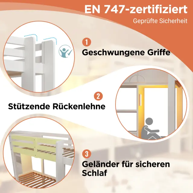 Pogradna postelja 90x200 cm z nočno lučko, omaro, polico in predali, bela