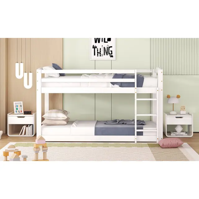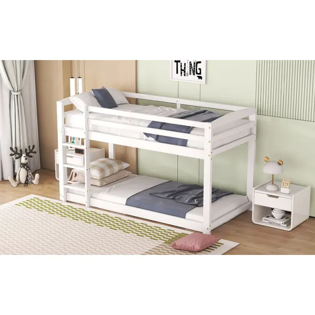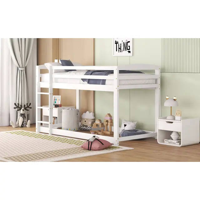 Pogradna postelja iz masivnega borovega lesa za otroke in najstnike, 90x200 cm, bela