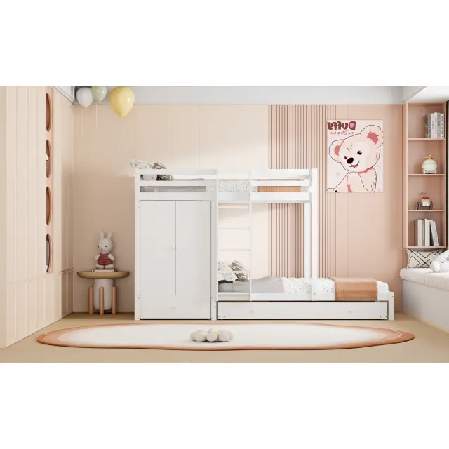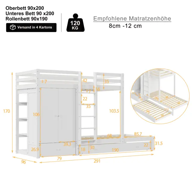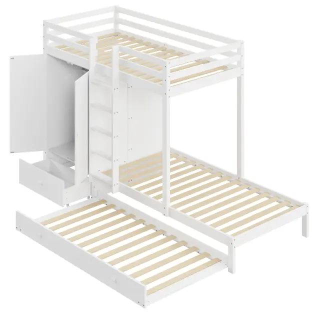 Pogradna postelja iz masivnega lesa 90*200 z izvlečnim ležiščem, bela