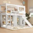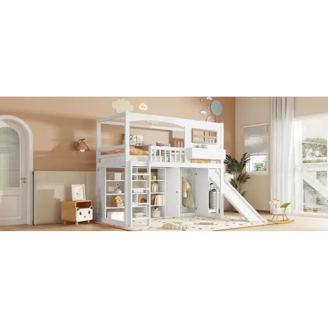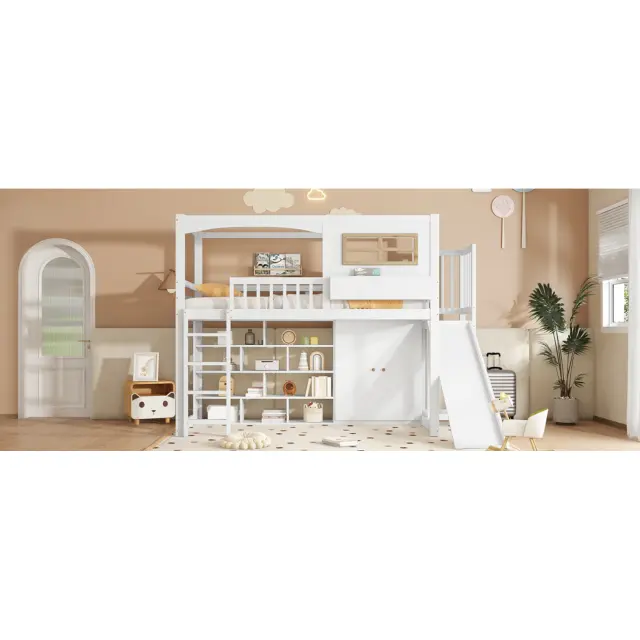 Pogradna postelja z drsnim delom, omaro in prostorom za shranjevanje, bela, 90x200 cm