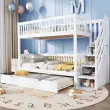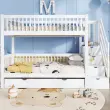 Pogradna postelja z izvlečnim ležiščem, bor + MDF, bela, 90x200/190 cm