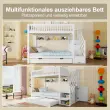 Pogradna postelja z izvlečnim ležiščem, polico, omaro in predalom za shranjevanje, 90x200 cm, bela