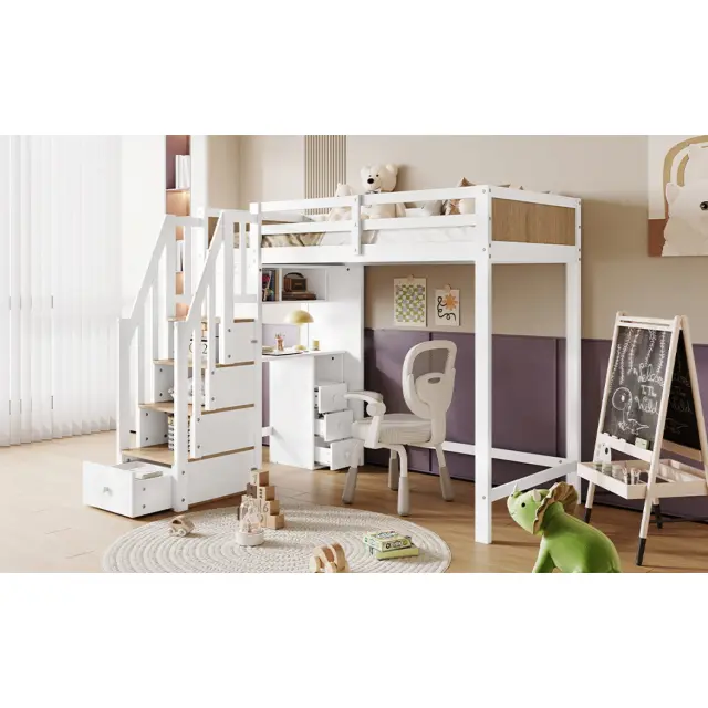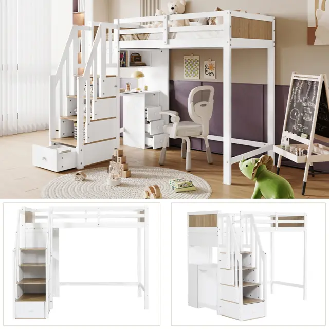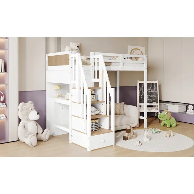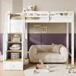 Pogradna postelja z mizo, polico, omaro, bor/MDF, bela/naravna, 90x200 cm