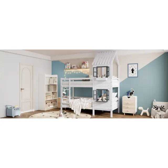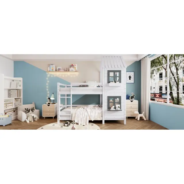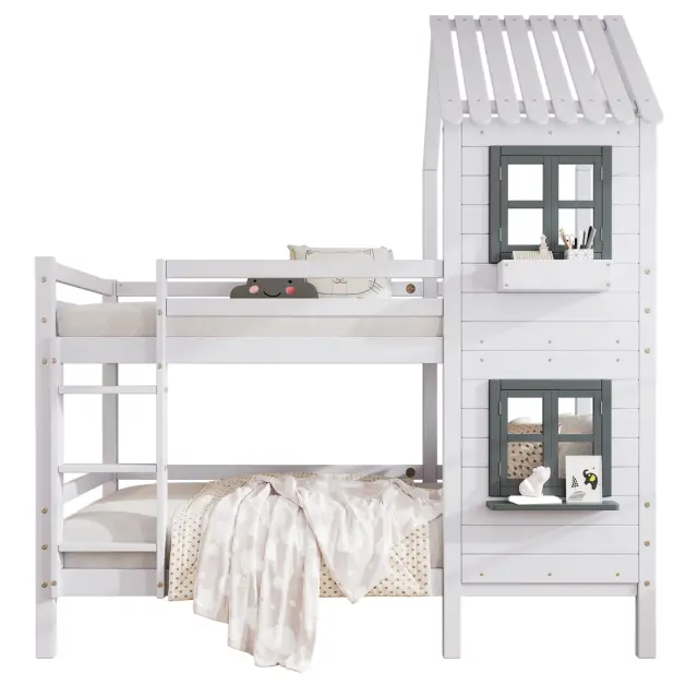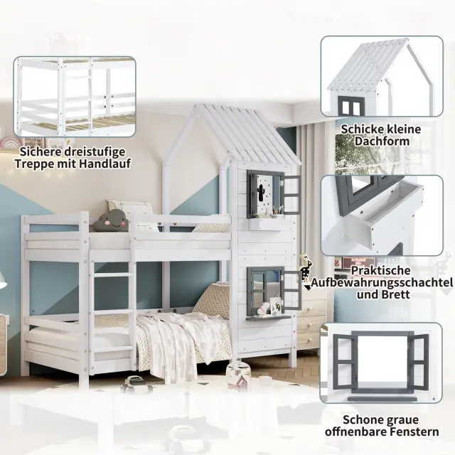 Pogradna postelja z oknom in zaščito pred padcem, bela (90x200 cm)
