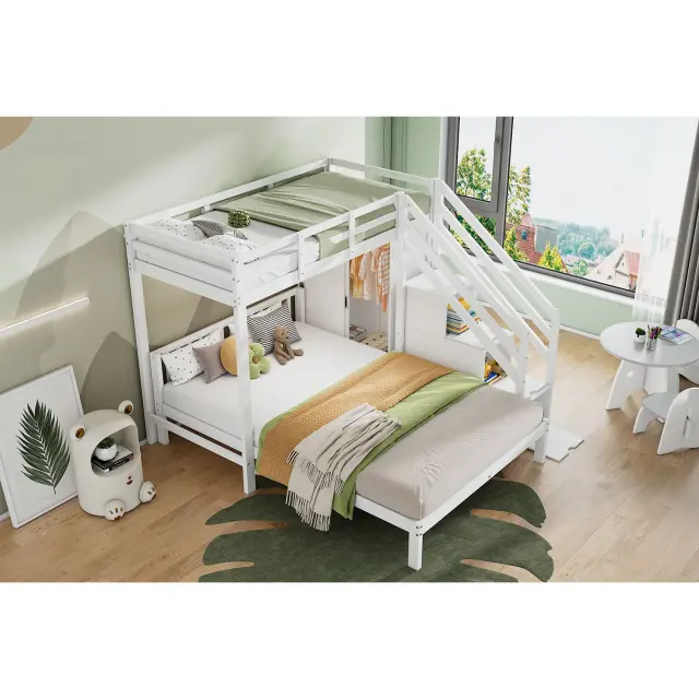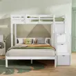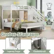 Ta prostorsko varčna pogradna postelja z omaro in stopnicami s shrambo je izdelana iz masivnega lesa in MDF-ja. Zahvaljujoč varnostnim ograjam ponuja visoko varnost in je primerna za rastoče otroke z vzmetnicami dimenzij 90 x 200 cm (zgornje ležišče) in 140 x 200 cm (spodnje ležišče). Enostavna montaža.