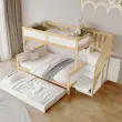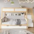 Pogradna postelja z zaščito pred padcem, postelja na izvlečnem ležaju, omara, kotne stopnice, bor + MDF, bela + naravna