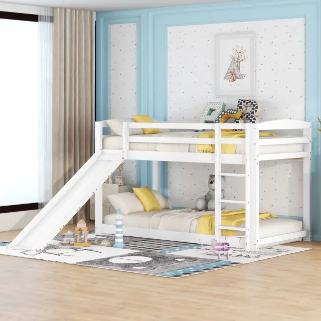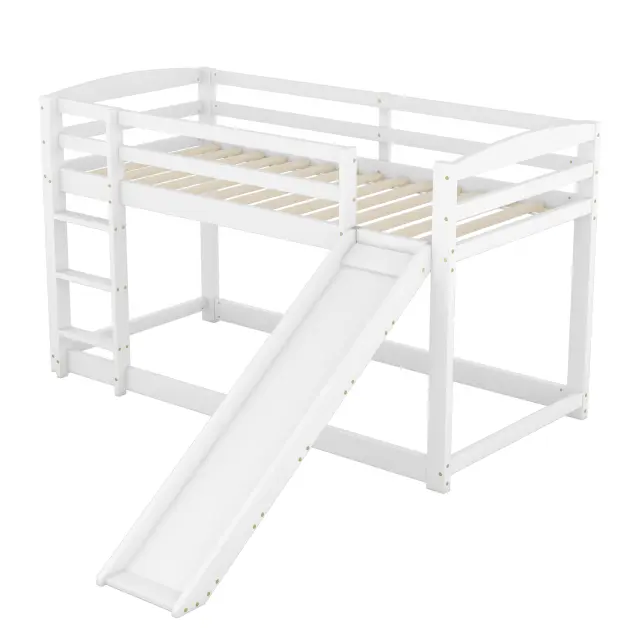 Pogradna postelja za otroke in najstnike, otroška postelja s toboganom, enostavna montaža, 90x200 cm, bela