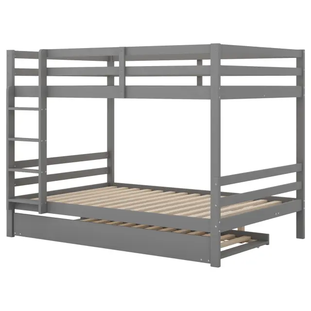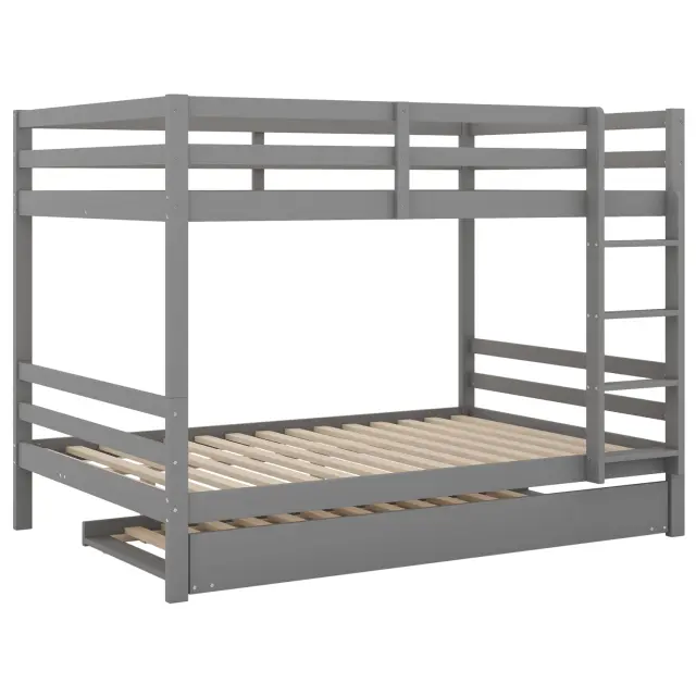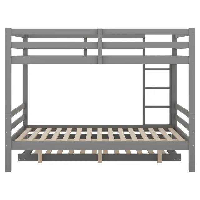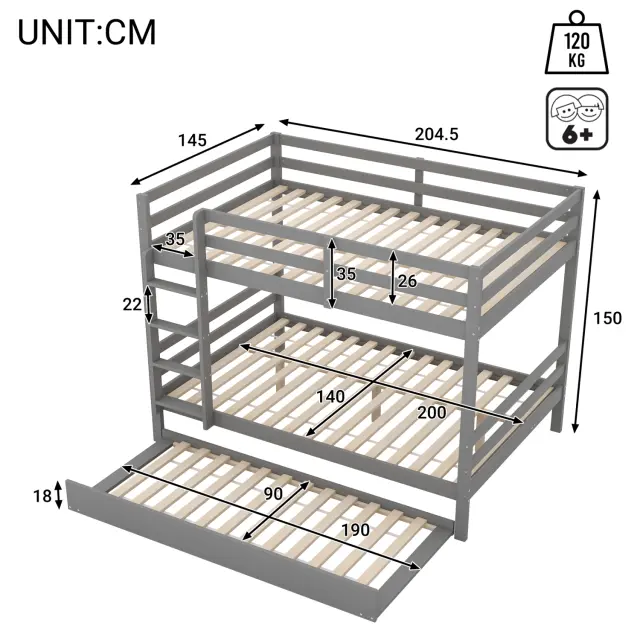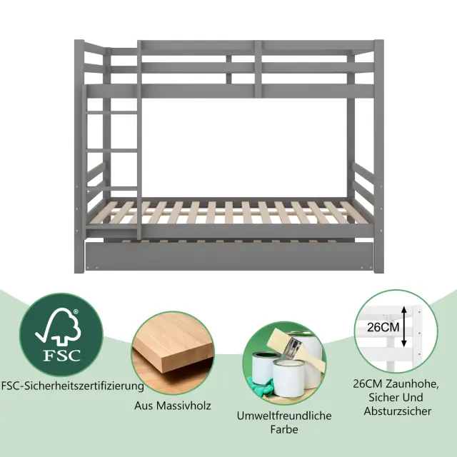 Pogradne postelje 140x200 cm z izvlečno posteljo, visoke ograje, stabilno stopnišče, sive