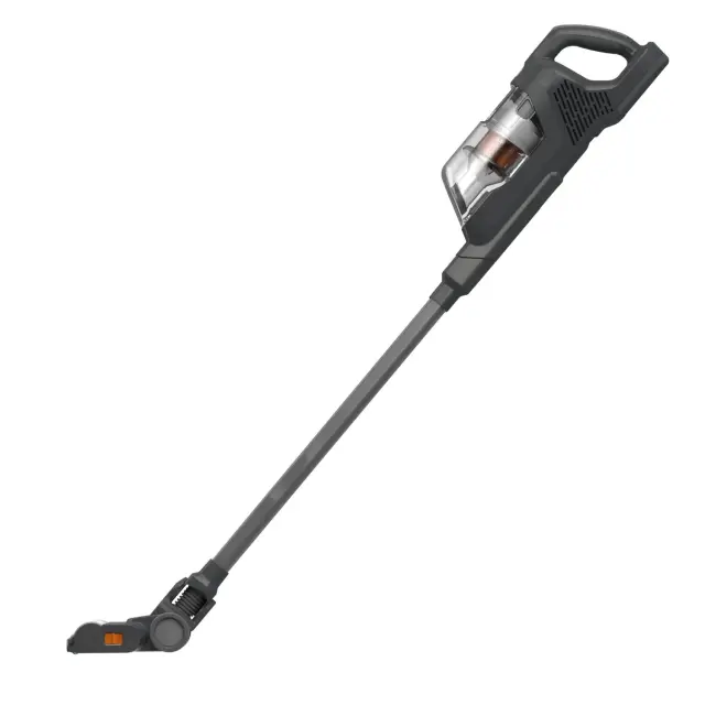 18V 2-v-1 pokončni sesalnik z vgrajeno 2Ah baterijo Indikator napolnjenosti baterije - prikazuje preostalo napolnjenost, da veste, kdaj je baterija skoraj prazna in je čas za polnjenjeVgrajen senzor tal, ki samodejno nastavi pravo hitrost za vsako vrsto talDvostopenjska nastavitev moči, ki omogoča prilagodljivo čiščenje trdih tal in preprogCiklonsko delovanje odstranjuje prah in umazanijo stran od filtra, tako da sesalna moč ostane visoka in zagotavlja dolgotrajno vrhunsko delovanje.Električna metlica, zasnovana za odstranjevanje trdovratnih umazanij s preprog in trdih talnih površin.Prozorna posoda za enostavno praznjenje s prostornino 500 ml - Zlahka vidite, kdaj jo je treba izprazniti - preprosto jo odnesite v koš in z eno samo potezo izpraznite umazanijo. Umazanije se ni treba dotikati. Obseg dobave: sesalnik z vgrajeno 2Ah baterijonastavek za ozke prostorepolnilnik