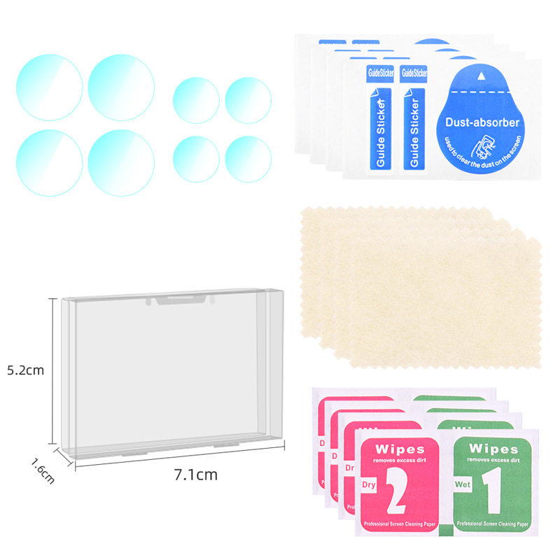 1 paket: 2 x film za leče, 2 x film za senzor, 2 x alkoholni paket, 2 x čistilna krpa, 2 x nalepka za odstranjevanje prahu