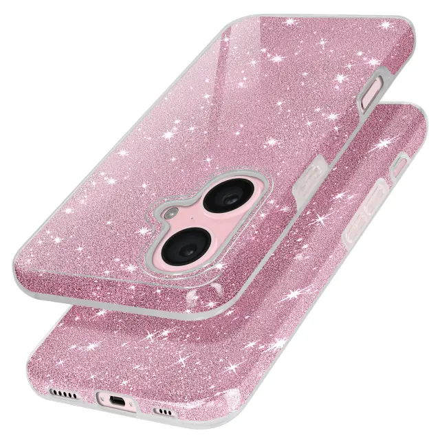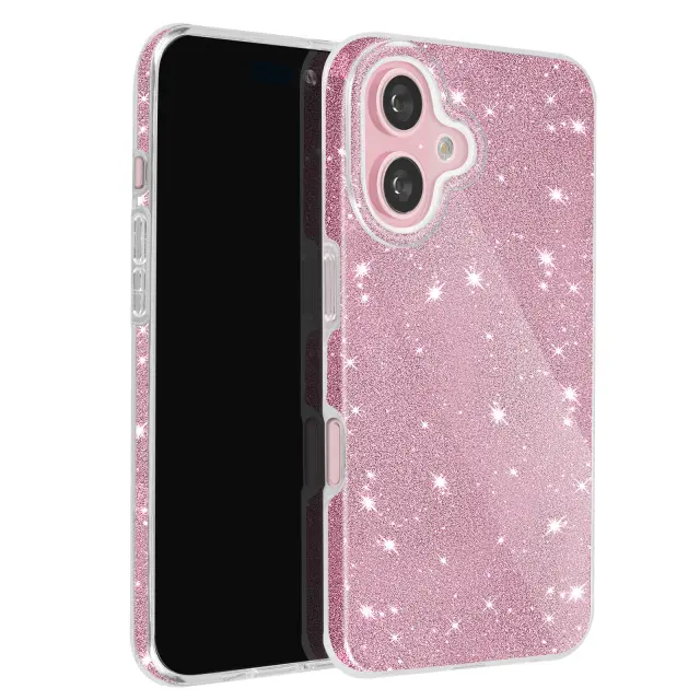Pokrov z bleščicami za iPhone 16 Hybrid Glamour Design, Rose clair