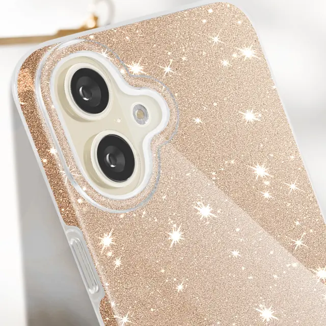 Pokrov z bleščicami za iPhone 16 Plus Hybrid Glamour Design, Zlata