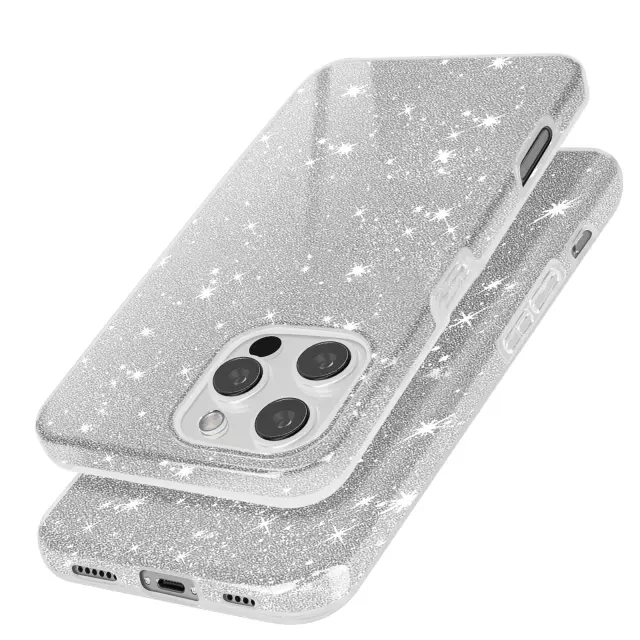 Pokrov z bleščicami za iPhone 16 Pro Hybride Glamour Design, Srebrna