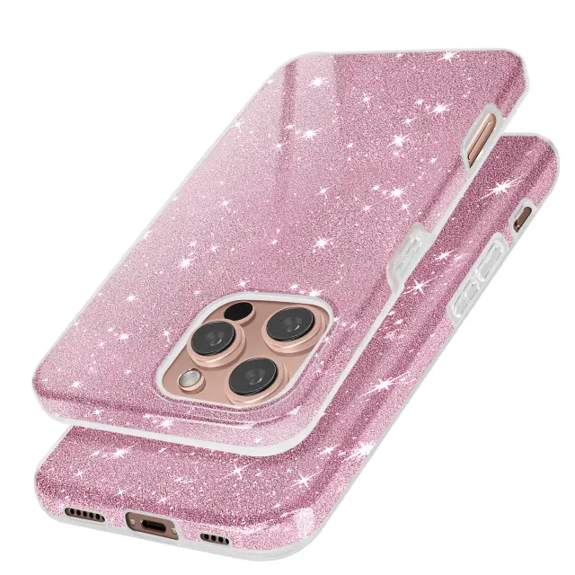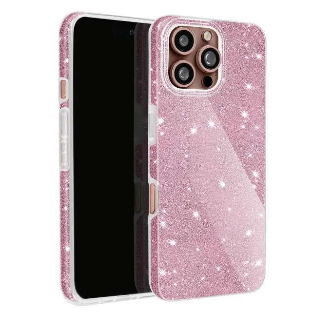 Pokrov z bleščicami za iPhone 16 Pro Max Hybride Glamour Design, Rose clair