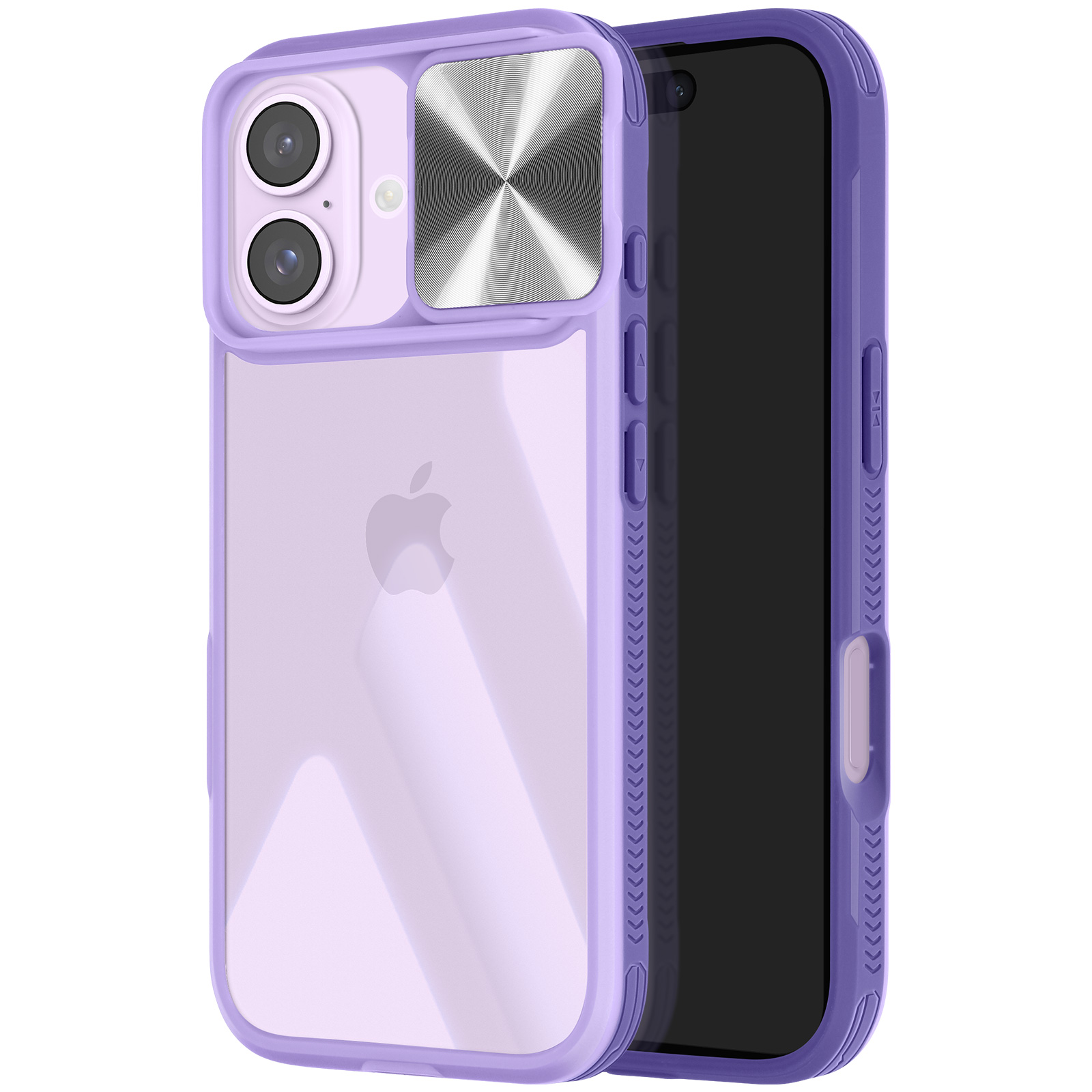 Pokrov za iPhone 16 Plus Drsni pokrov kamere QI Združljiv, Vijolična