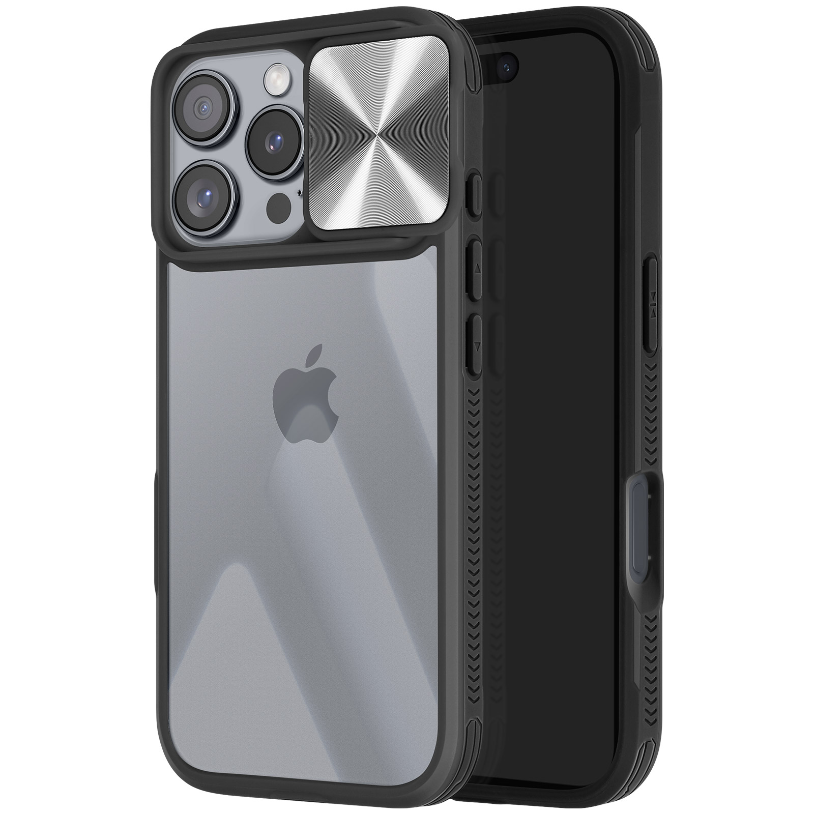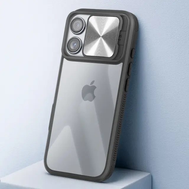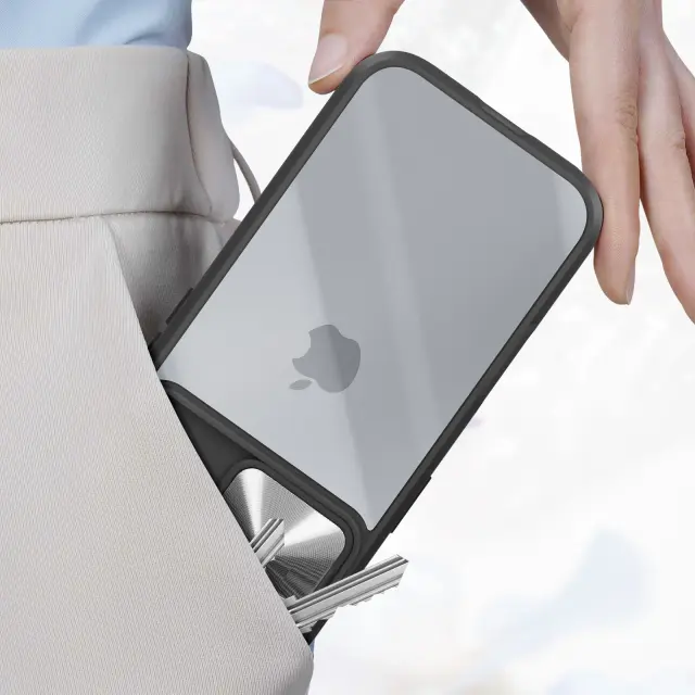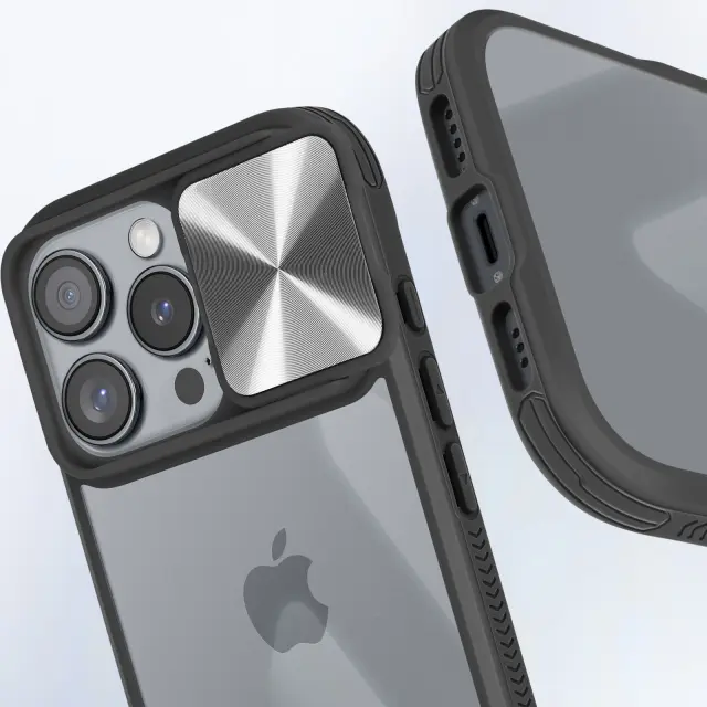 Prozorna lupina s črnim obrisom za optimalno vsakodnevno zaščito vaše [ime naprave].. Združuje togo polikarbonatno hrbtišče s silikonskim gelom.. Popolnoma odporen na udarce in praske, zato bo vaša naprava videti kot nova. Drsni pokrov kamere ščiti objektive iPhona pred praskami, hkrati pa omogoča enostaven dostop.