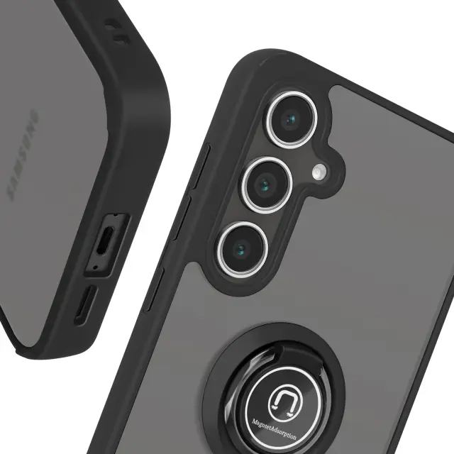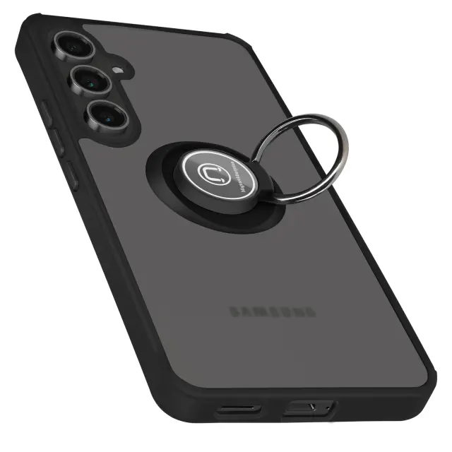 Pokrov za Samsung Galaxy S24 FE Kovinski obročni video nosilec, Črna
