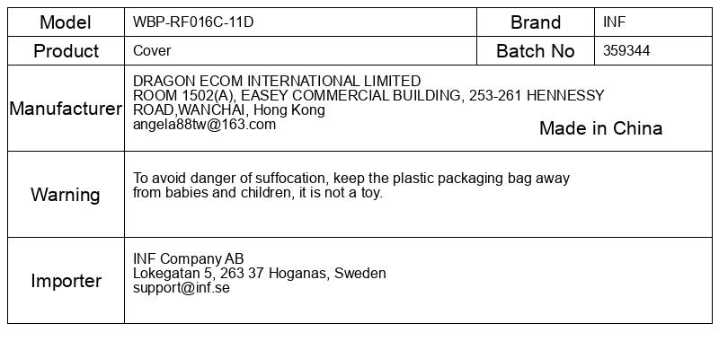 Da bi se izognili nevarnosti zadušitve, plastično embalažno vrečko hranite izven dosega dojenčkov in otrok, saj ni igrača.