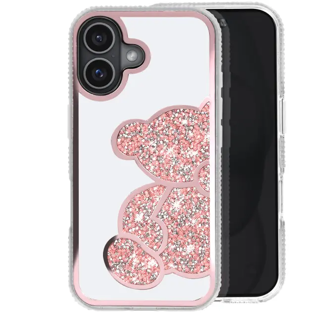 Pokrovček z bleščicami za iPhone 16 Plus Vzorec medvedka s štrasom, Roza