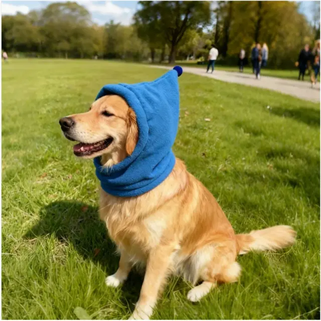 Polar Fleece Pet Warm Calming Hood - Zimska Kapa za Pse & Zaščita Pred Hrupom Blue M
