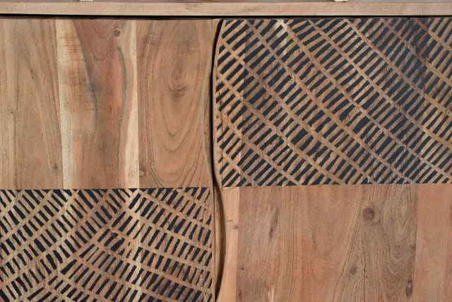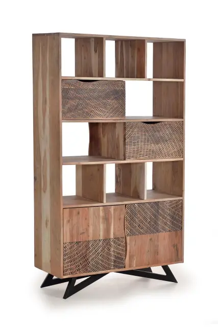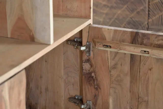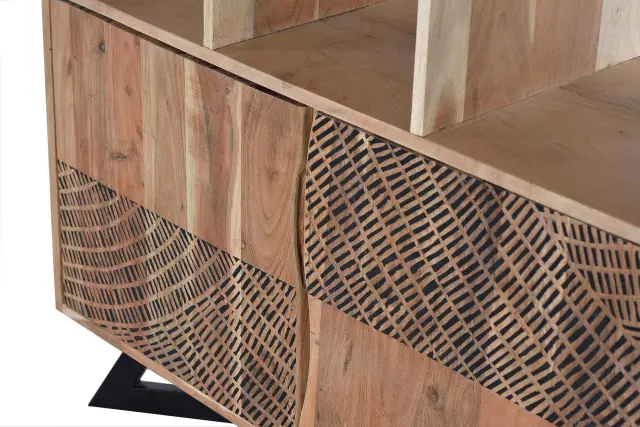 Polica iz akacijevega lesa z naravnimi kovinskimi nogami