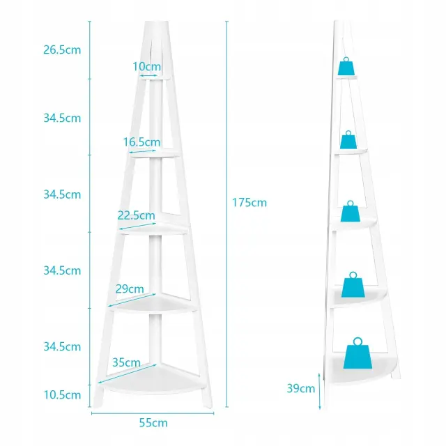 Polica za datoteke 5 polic lestev v obliki A-oblike stoječe police vogalna polica les bela