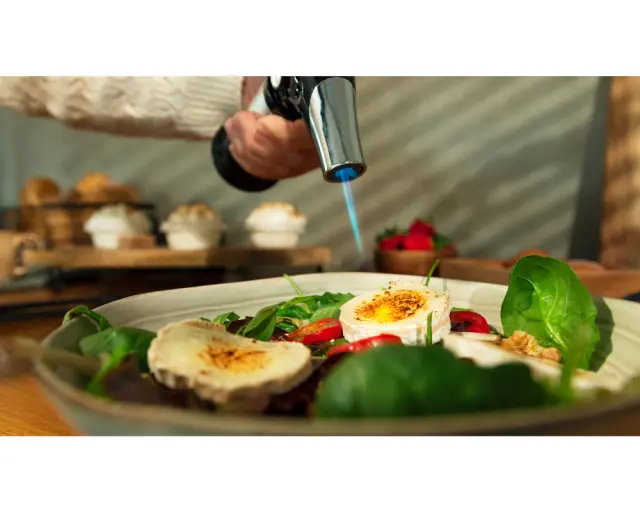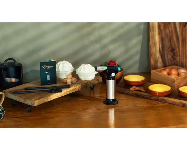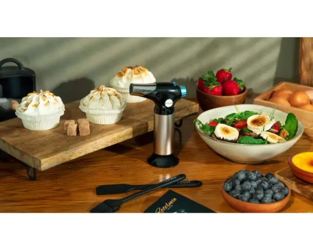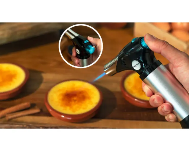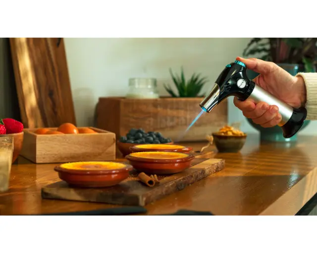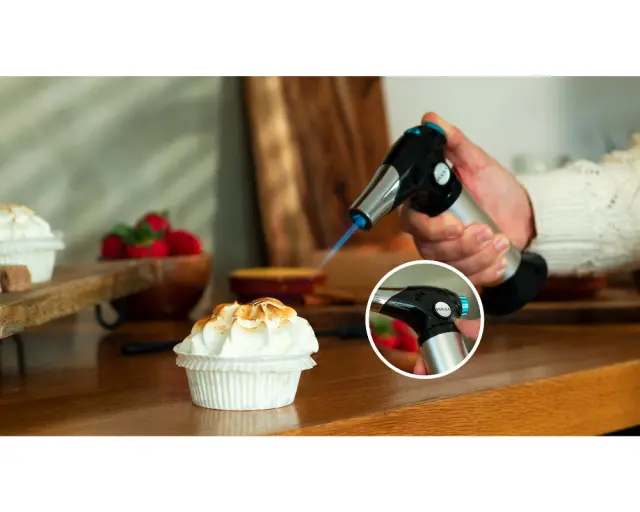 Kuhinjski gorilnik Flame-Cook 1000 Steel doseže temperaturo do 1300 ºC/2370 ºF, da lahko gratinirate, karamelizirate ali dodate končni pridih vašim jedem.